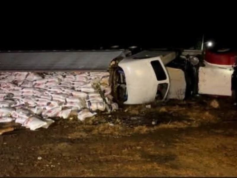 Tráiler termina volcado fuera del camino en la Tepic–Guadalajara