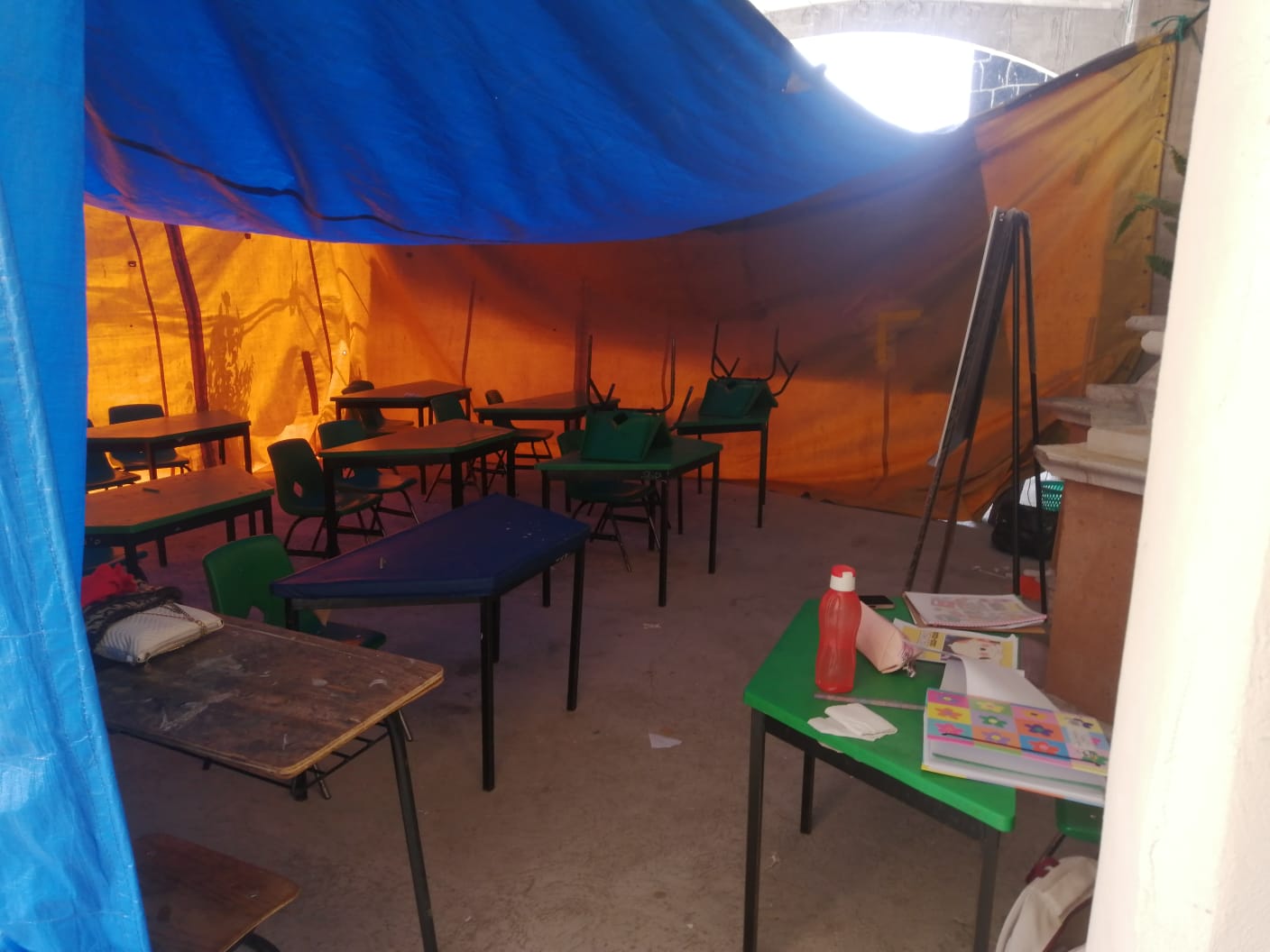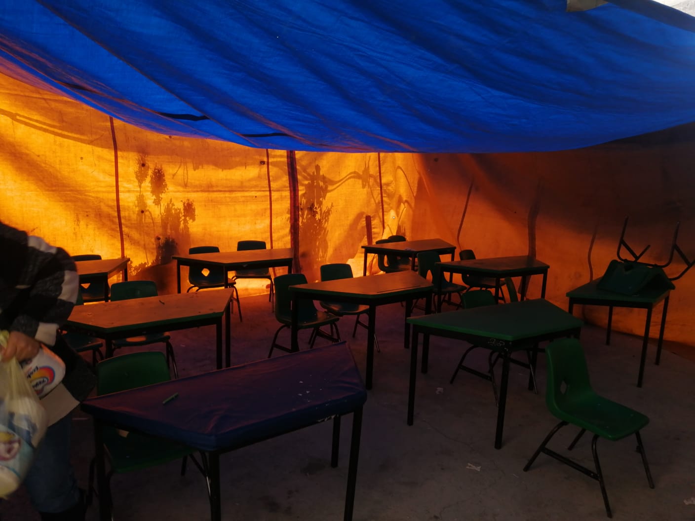 El panorama no es fácil: padres de familia han tenido que ver a sus hijos tomar clases bajo lonas, en condiciones precarias, con tal de no interrumpir su educación.