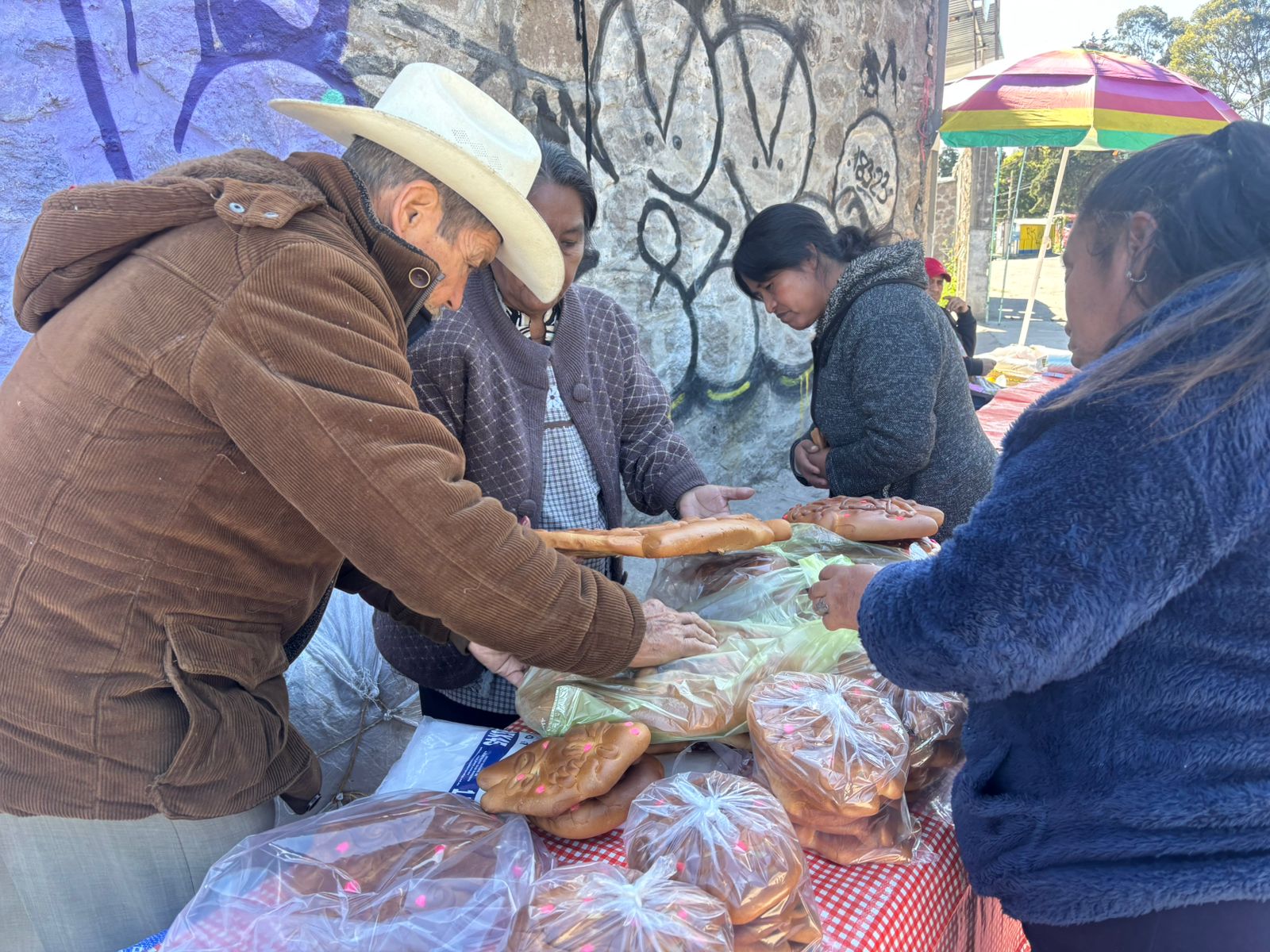 Panaderos del poblado de Tecomatlán han salido a las calles de Toluca para comercializar su tradicional pan de Día de Muertos, una creación que solo es elaborada una vez al año.