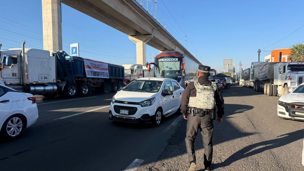 Los transportistas continuan con un bloqueo intermitente en la carretera México-Toluca con dirección a la Ciudad de México, a la altura del municipio de Lerma. Esta acción afectó una de las principales salidas desde el Valle de Toluca hacia la capital del país.