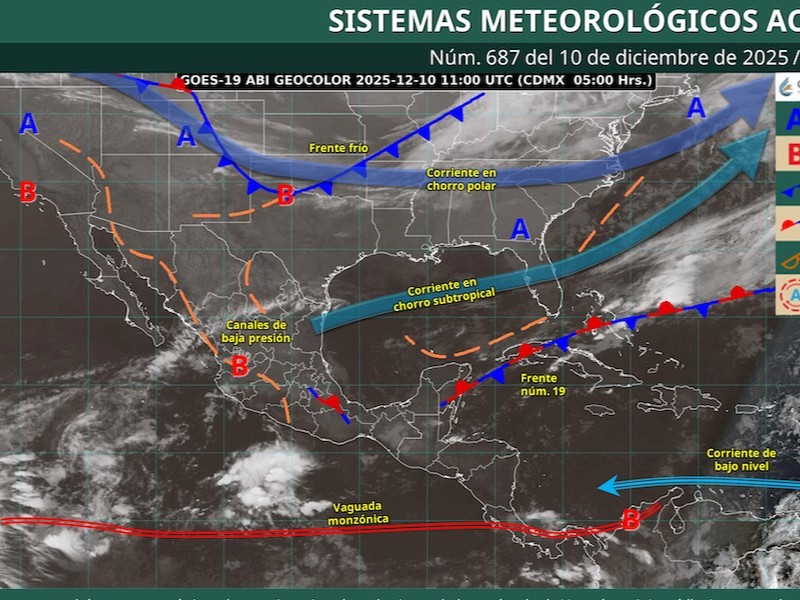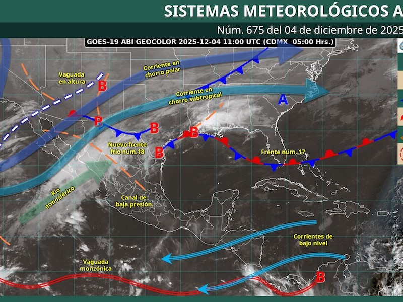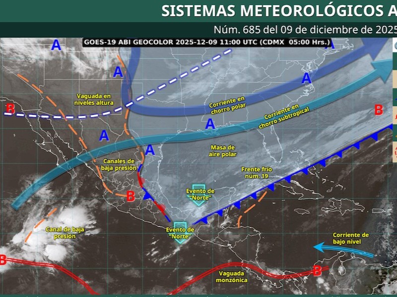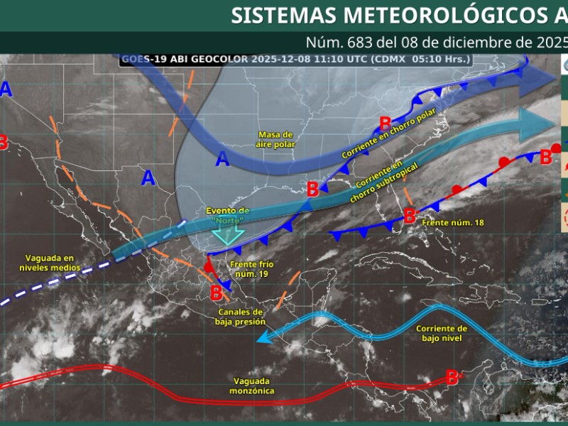 Frente frío 19 trae lluvias fuertes y vientos peligrosos en México