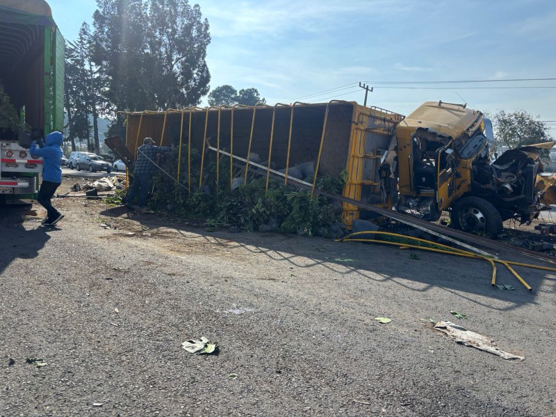 Volcadura de camión en la México-Toluca, dejó horas de tráfico, transportaba plantas
