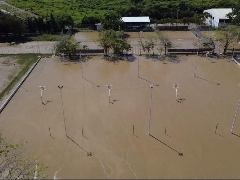 Unidad Deportiva “Enrique Valdez” inicia limpieza tras inundación