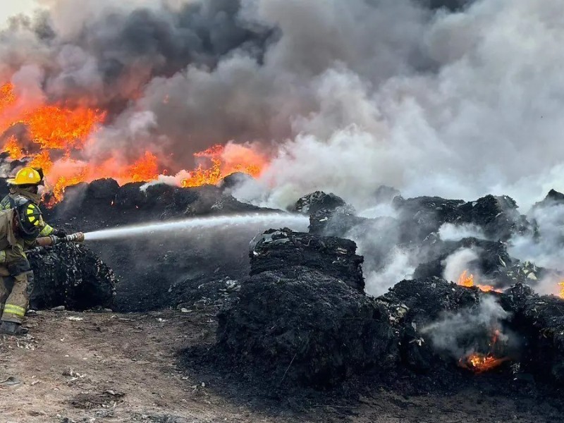 Arden ochenta toneladas de textil y generan enorme columna de humo