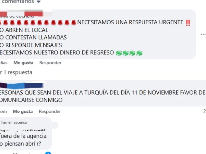 Los afectados, sin embargo, señalan que hasta el momento no han recibido contacto directo ni reembolsos, por lo que mantienen su exigencia de una investigación formal sobre el caso, ya que hay quienes ya pagaron sus viajes completos o bien han dado anticipos honerosos.