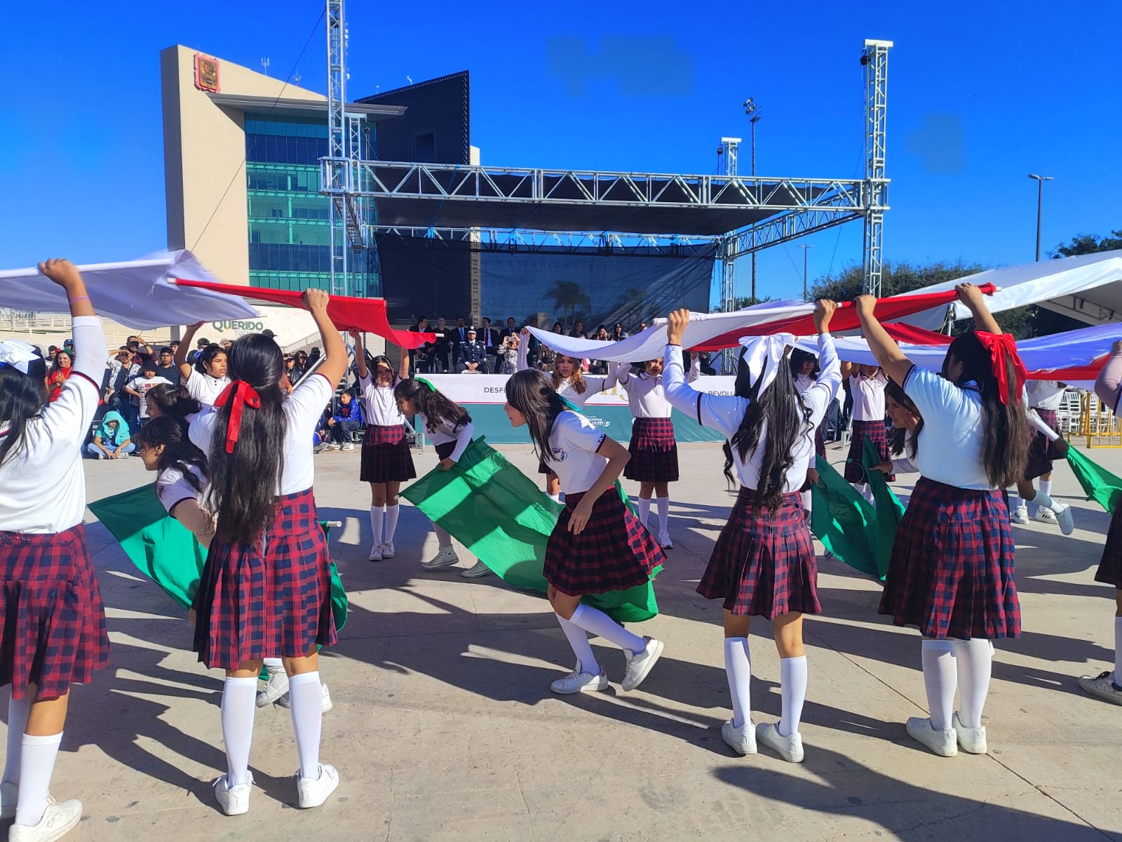En Torreón, el desfile arrancó con elementos de la Dirección de Tránsito y Vialidad, quienes encabezaron el recorrido antes de dar paso a más de 4 mil participantes. Niñas, niños, deportistas, contingentes escolares y agrupaciones sociales avanzaron entre aplausos, muchos de ellos portando la bandera nacional o vistiendo los colores patrios.