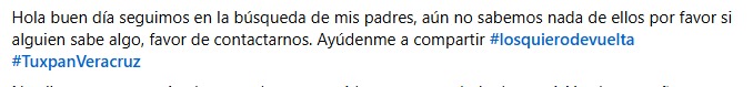 En diversas redes sociales fue compartida una grabación en donde la pareja se presenta y señala que son padres de un interno del penal de Tuxpan y confirman que su desaparición se debe a temas de seguridad y disputa entre grupos delictivos de la zona, relacionados también con operaciones en el reclusorio de Tuxpan.