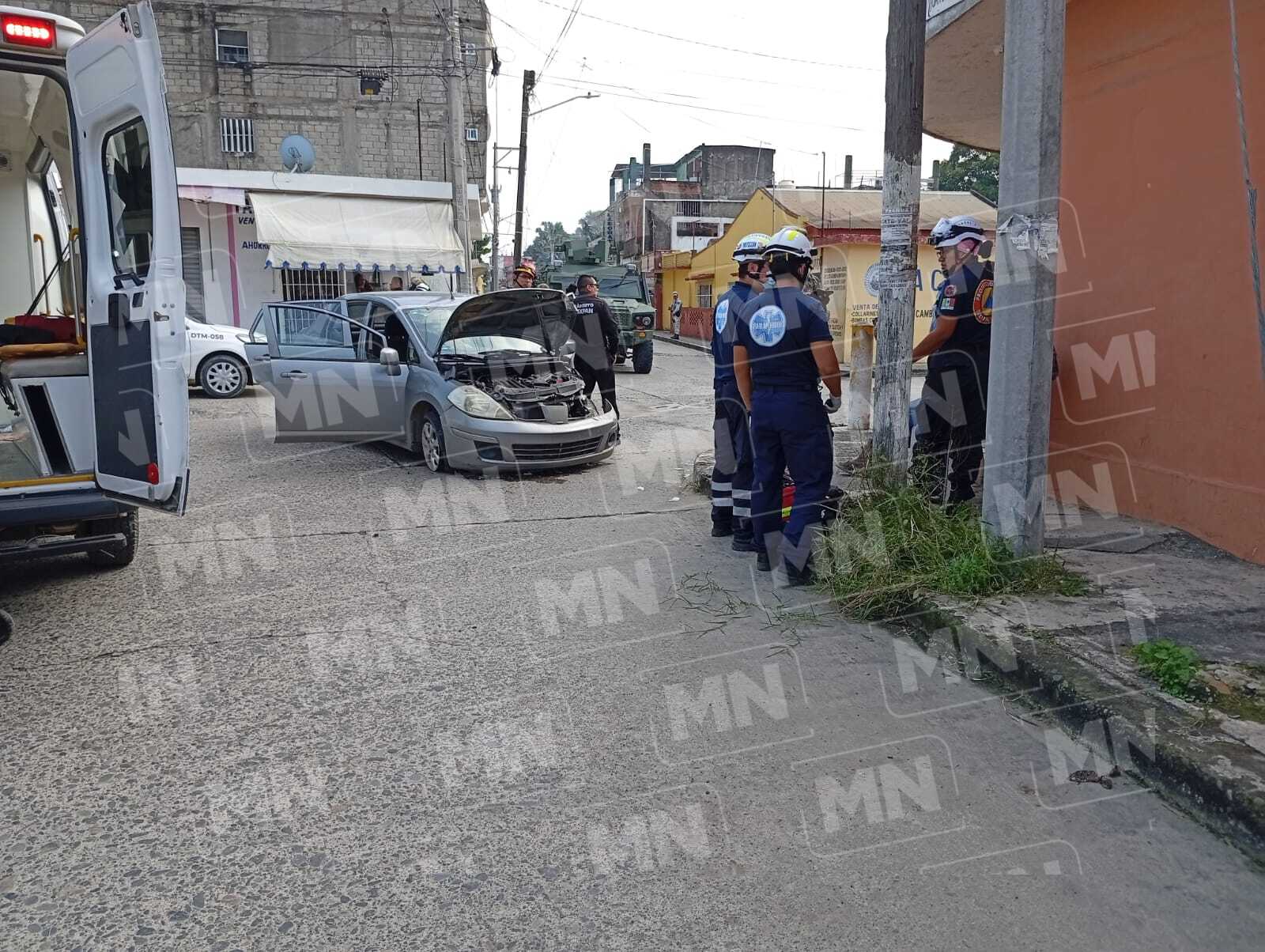El accidente se registró en la esquina de las calles Hernández y Hernández con Juan Soto Lara de la colonia Centro de este municipio. De acuerdo al reporte preliminar, el conductor del vehículo táctico blindado, invadió la circulación preferente , impactando a un automóvil particular.