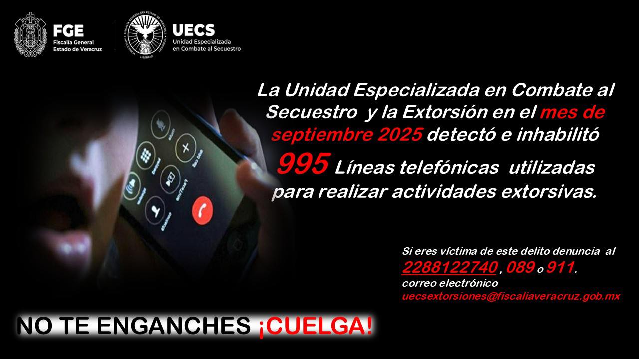 Durante septiembre, la Unidad Especializada en Combate al Secuestro y la Extorsión desactivó e inhabilitó 995 líneas telefónicas que eran utilizadas para extorsionar en el estado.