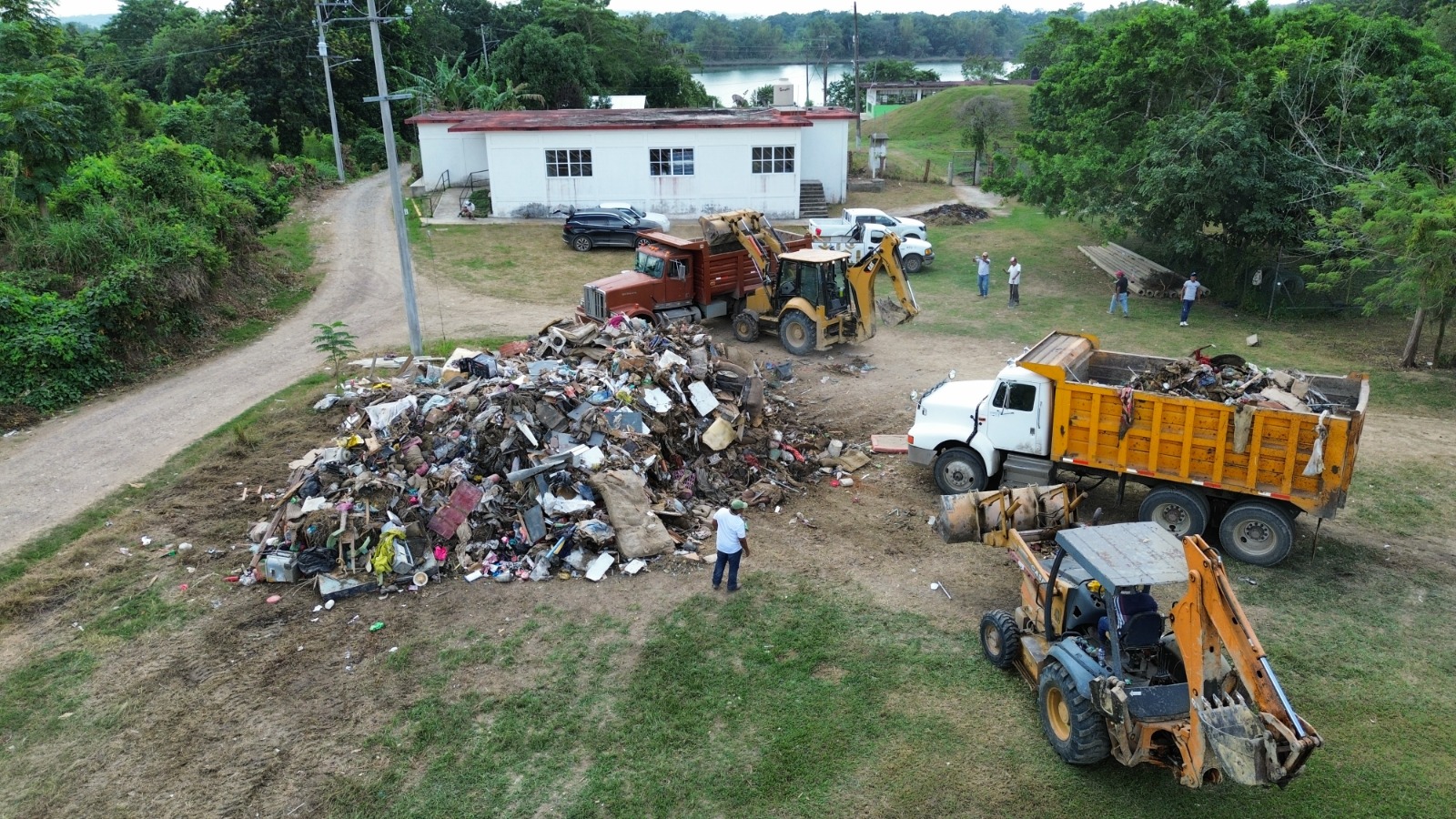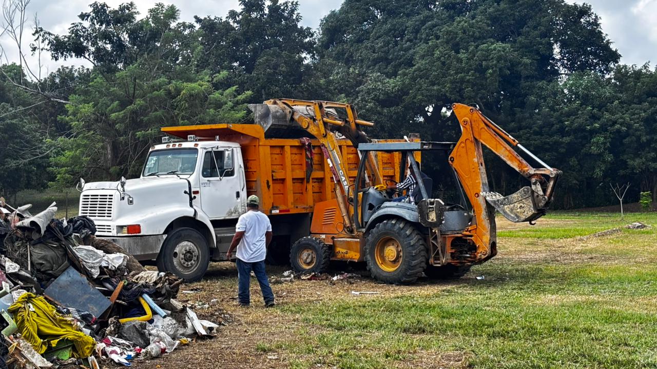 El Ayuntamiento de Tuxpan desplegó este domingo personal, camiones y maquinaria de la Dirección de Obras Públicas para avanzar en la limpieza y retiro de toneladas de basura en las comunidades afectadas por la reciente inundación.