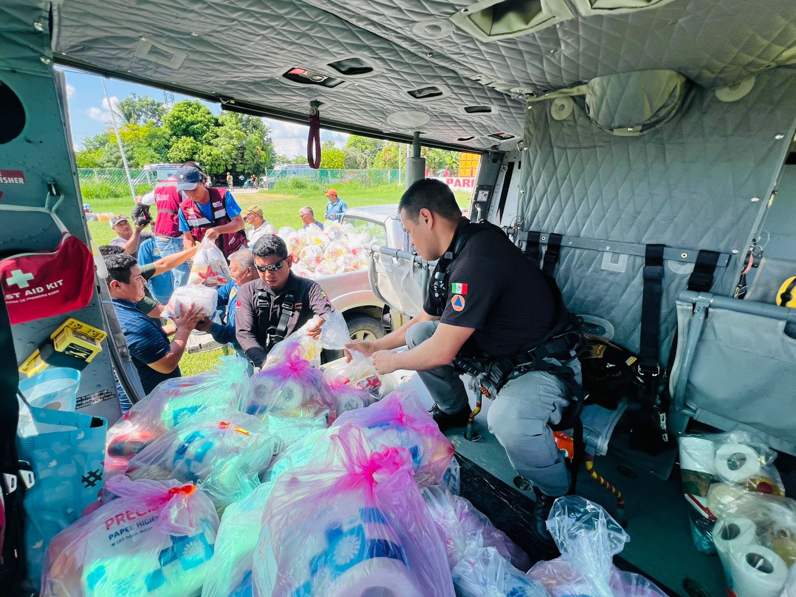 En sus redes oficiales informaron que durante esta jornada se brindó el apoyo con el helicóptero de PCNL para el traslado y la entrega de despensas recolectadas por el estado de Veracruz.
