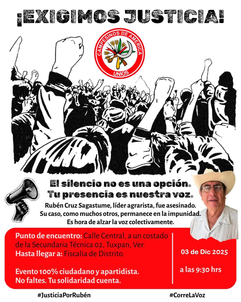 Este miércoles 3 de diciembre se retomará la marcha pacífica convocada por la Liga Roja de la Confederación Nacional Campesina para exigir justicia por el asesinato del líder agrarista Rubén Cruz Sagastume, cuyo caso señalan, continúa en la impunidad meses después de los hechos.