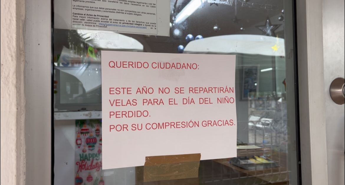La colocación de un aviso en la puerta de la Dirección de Turismo municipal ayer martes 2 de diciembre informando que "este año no se repartirán velas ", generó sorpresa, molestia y una oleada de críticas entre la ciudadanía, pues se trata de una actividad que, con el paso del tiempo, se ha convertido en tradición previa al Día del Niño Perdido.