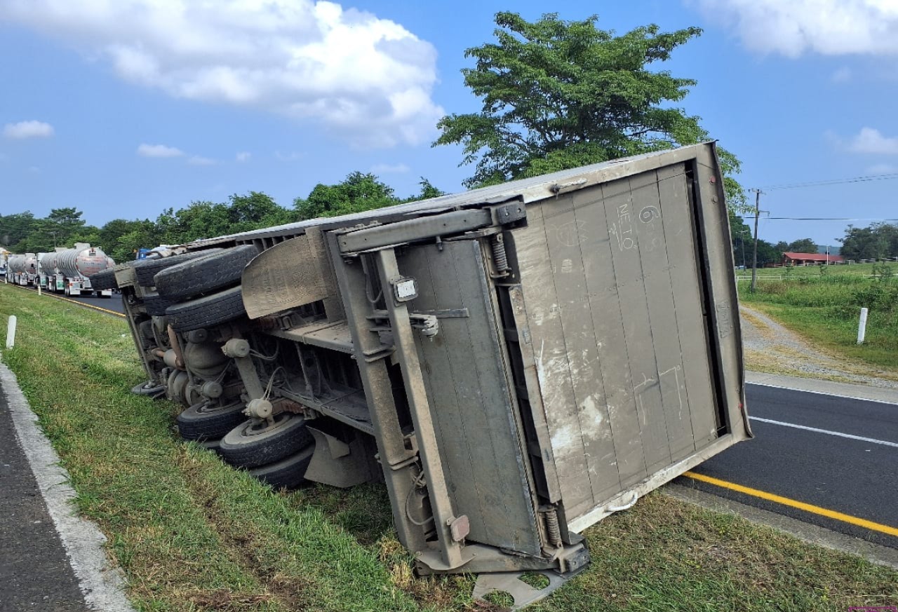 La unidad que transportaba abarrotes y productos perecederos con destino a Tuxpan perdió el control al encontrarse con una larga fila de vehículos detenidos debido al choque entre dos tráileres ocurrido horas antes.