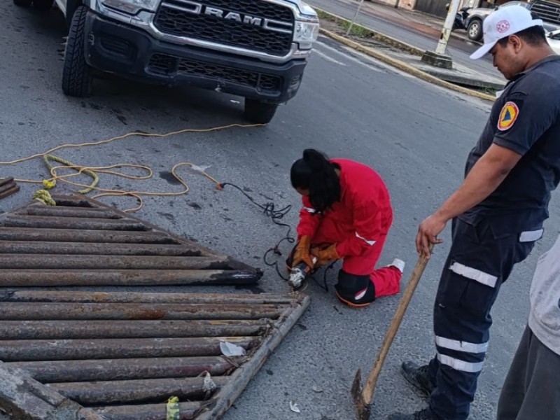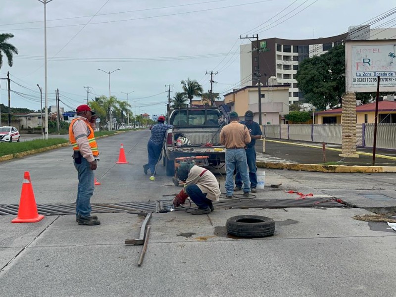 Reparan rejilla dañada en avenida Cuauhtémoc