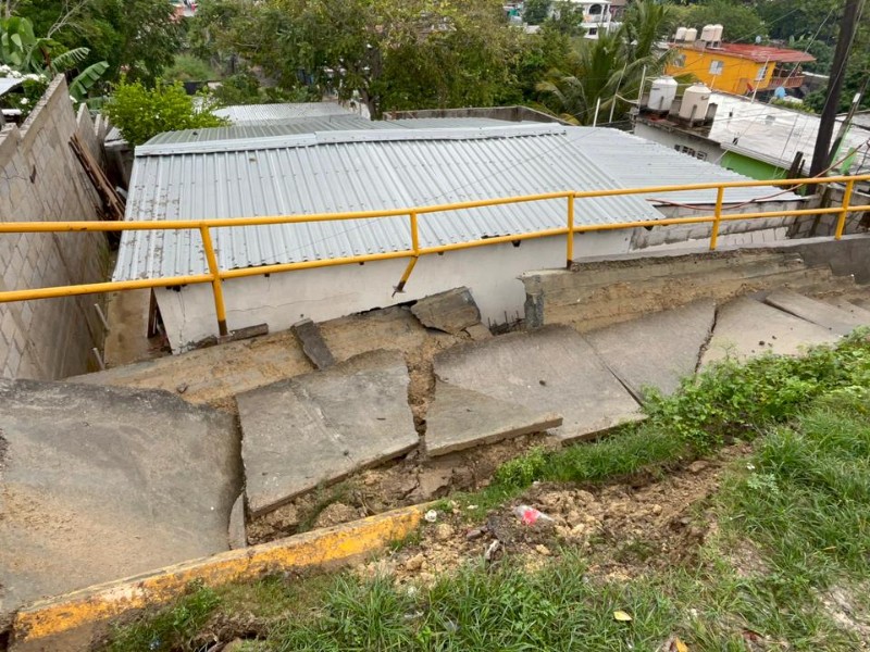 Colapsan banqueta y barda sobre vivienda en Tuxpan