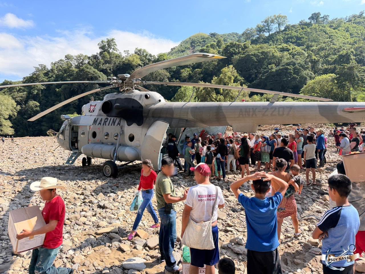 La SEMAR reiteró que su personal mantiene el despliegue por mar, aire y tierra, asegurando que la asistencia llegue de manera oportuna a quienes más lo necesitan en Poza Rica, Álamo y otras zonas afectadas del estado.