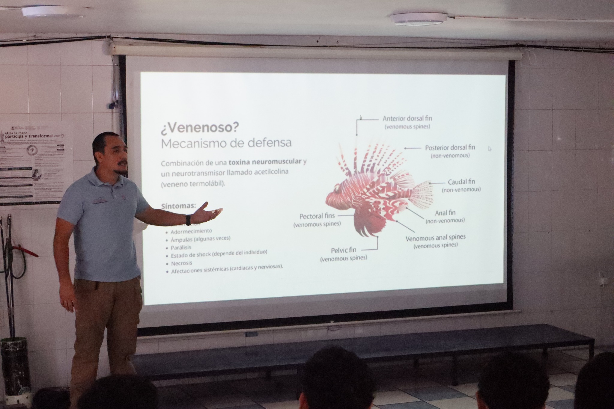 Señaló que este pez se alimenta principalmente de peces y crustáceos pequeños y representa una amenaza para la cadena alimentaria arrecifal.