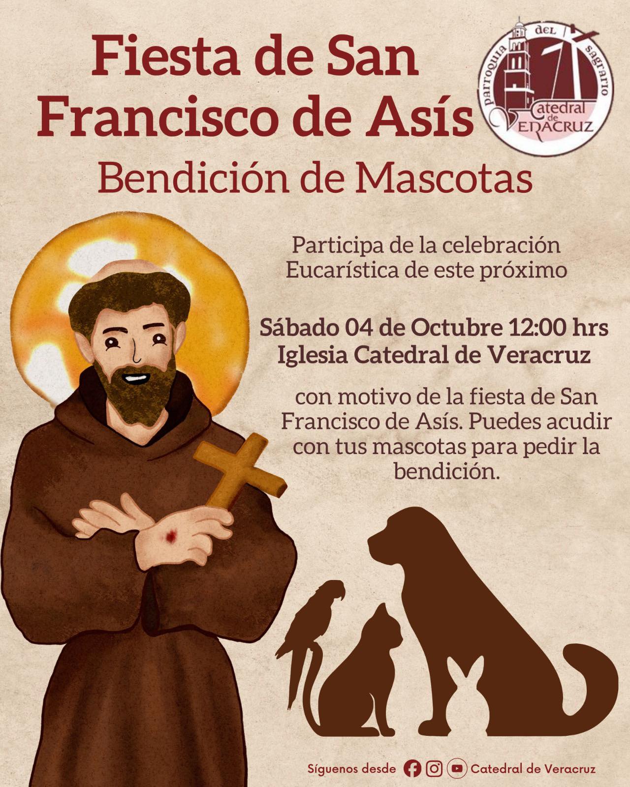 La Catedral de Veracruz este sábado 04 de octubre llevará a cabo la bendición de animalitos en el día de San Francisco de Asís, como una tradición que conmemora el amor del santo por todas las criaturas y su papel como patrón de los animales y ecologistas.