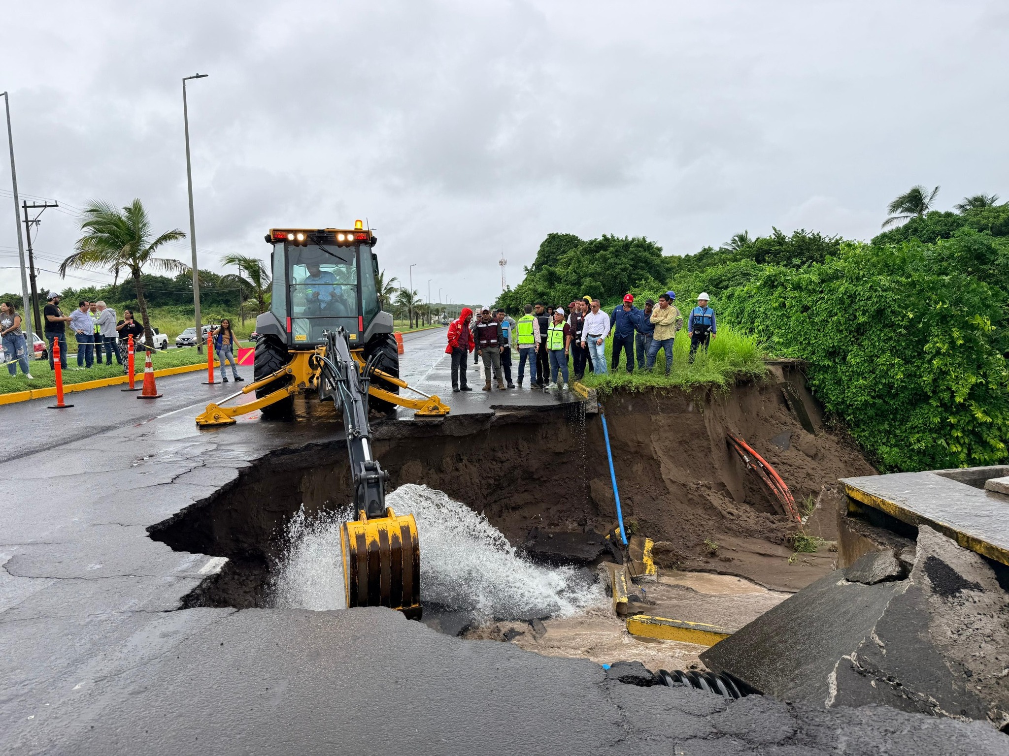 De acuerdo con Daniel Romero, director de Protección Civil de Alvarado, los trabajos presentan un avance cercano al 80 por ciento, con tareas de colocación de los tubos dañados.