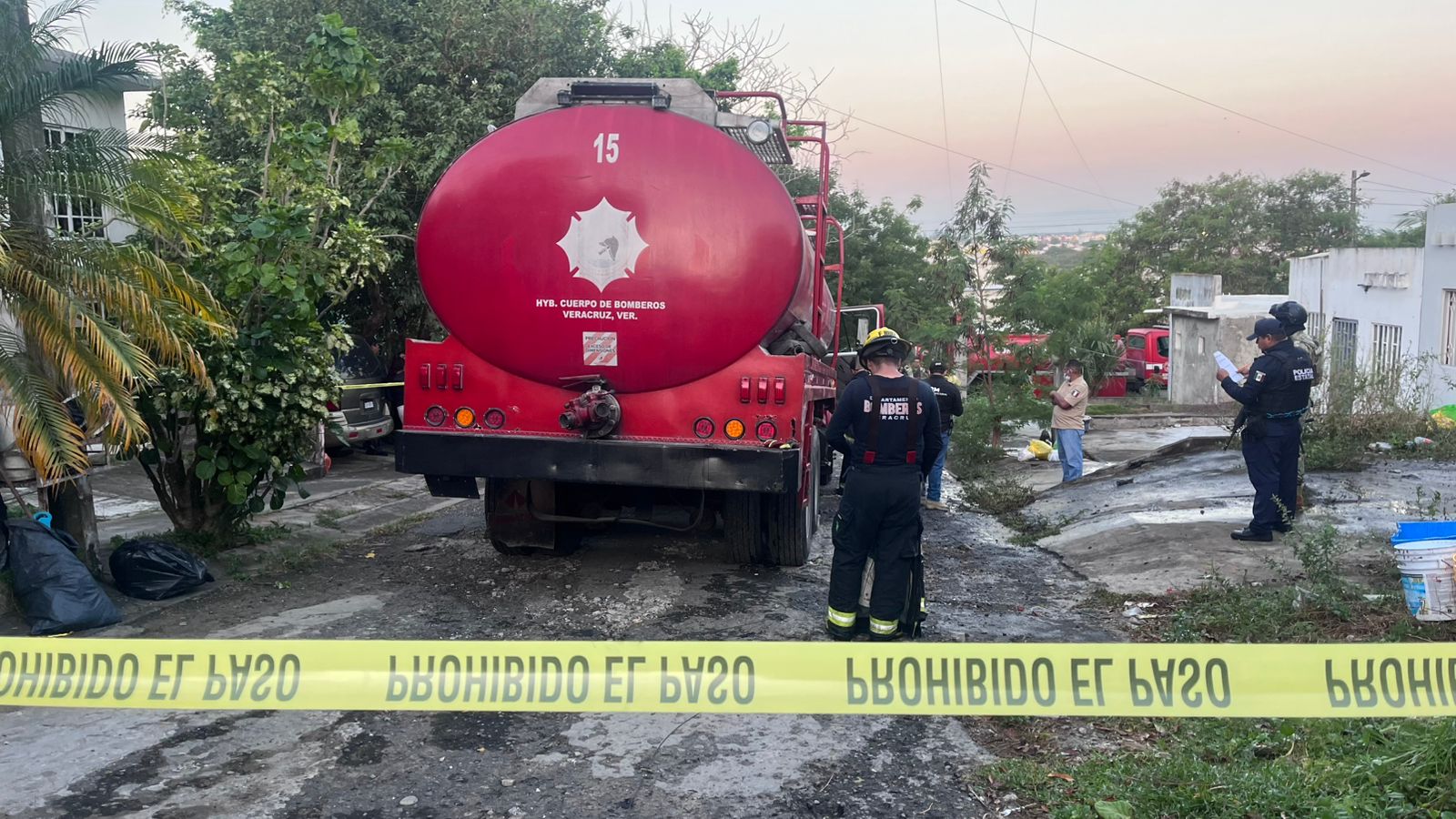 Elementos de la Policía Naval y Estatal llegaron al lugar y tomaron conocimiento de los hechos, mientras que la llegada de los bomberos municipales se retrasó más de media hora debido al mal estado de las calles del fraccionamiento, complicando la atención del incendio.