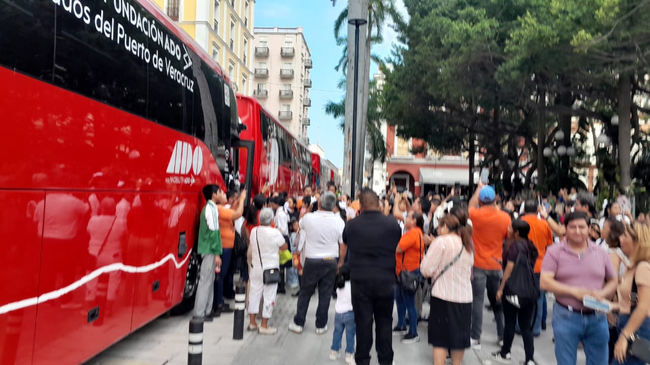 Cuatro autobuses salieron desde el zócalo de la ciudad y fueron despedidos por familiares y amigos.