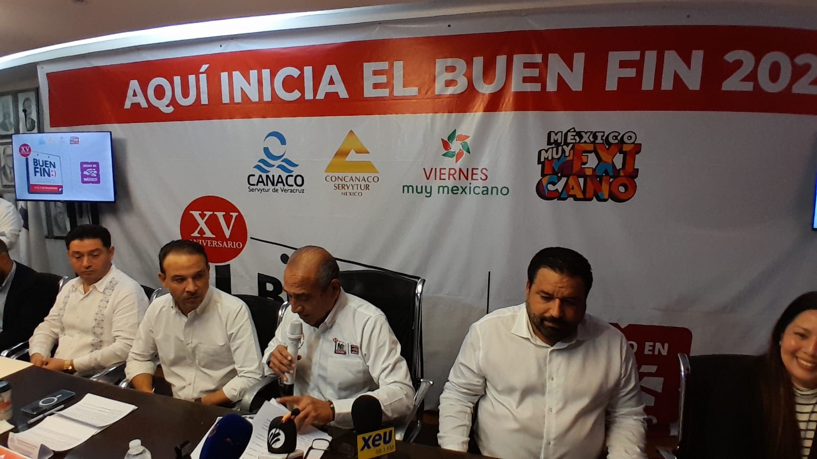 Este jueves anunciaron en rueda de prensa la campaña número 15 del Buen Fin en la zona conurbada de Veracruz, del 13 al 17 de noviembre, que impulsa el comercio local y dinamiza la economía de cara al cierre de año, informó José Tomás Méndez Valerio, presidente de la Cámara Nacional de Comercio (Canaco).