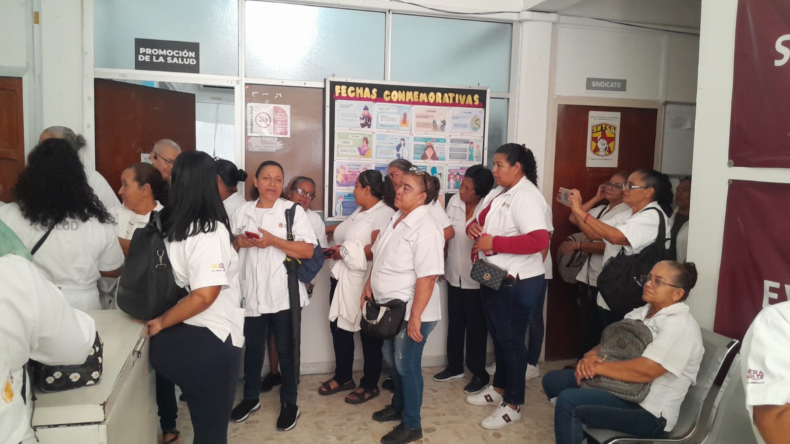 Trabajadores auxiliares del sector salud adscritos a diferentes centros de la Jurisdicción Sanitaria número VIII se manifestaron este lunes para exigir el pago de apoyos económicos que no han recibido desde hace nueves meses.