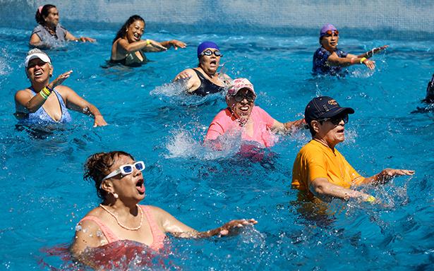Las actividades incluyen caminatas, yoga, acuaerobics, torneos de cachibol y ejercicios de movilidad, además de detecciones médicas básicas mediante los módulos PrevenIMSS.