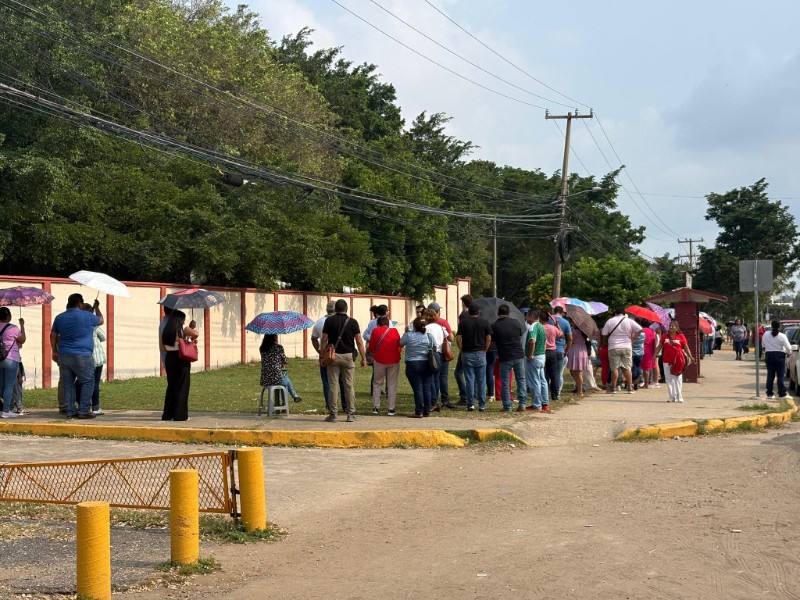 Largas filas y molestia por entrega de tarjetas de nómina en Coatzacoalcos