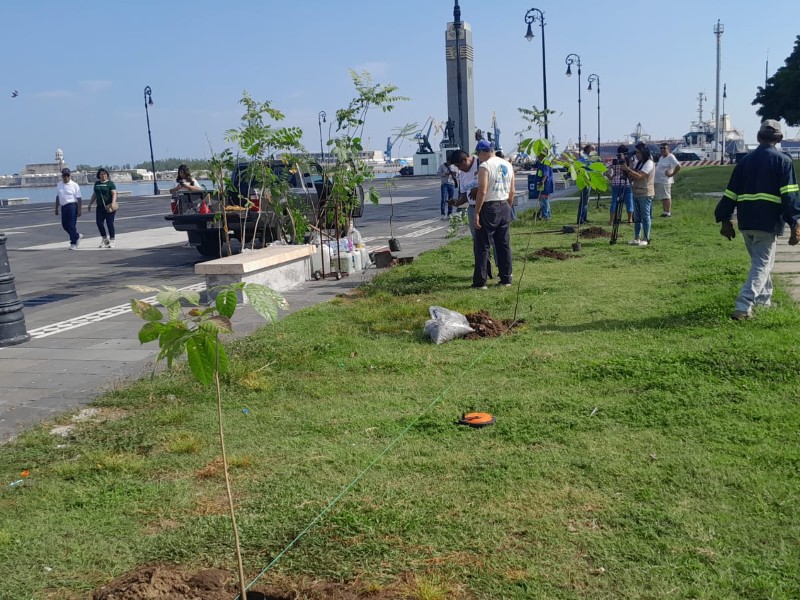 Plantan árboles en Macroplaza de Veracruz para combatir plancha de concreto