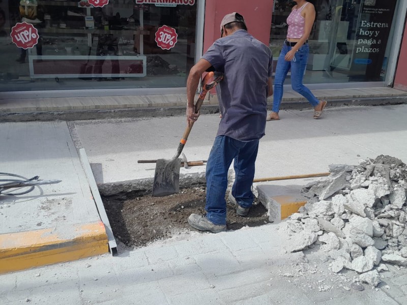 Perforan vialidad y rompen banquetas de la Avenida 5 de Mayo