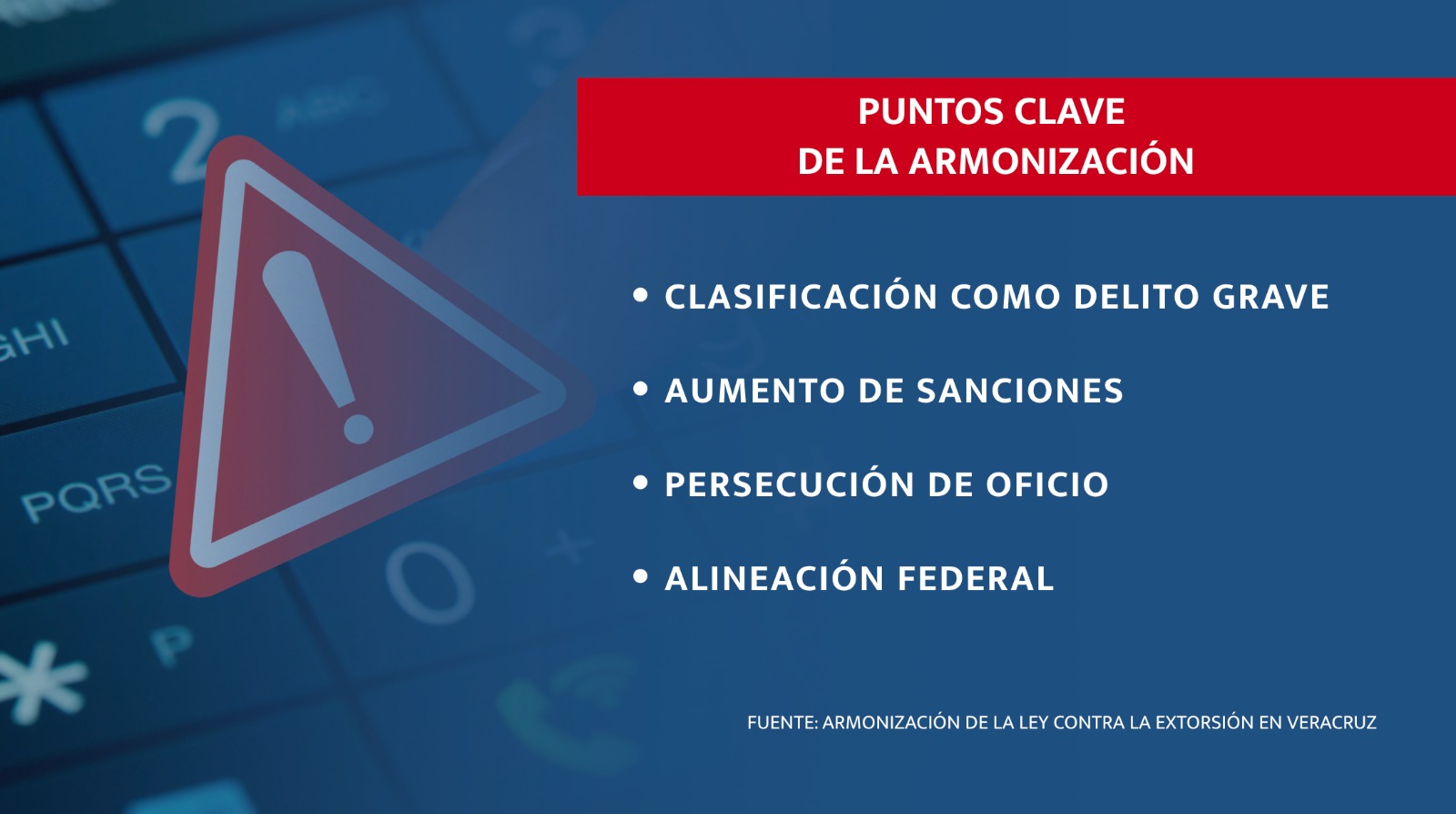En el caso del Congreso del Estado de Veracruz, se aprobó recientemente la armonización legislativa que considera la extorsión como un ilícito grave. Esta reforma se presenta ante la necesidad de fortalecer el marco legal local para combatir este crimen de alto impacto, y se alinea con la estrategia nacional para homologar el tipo penal y sus sanciones en todo el país.