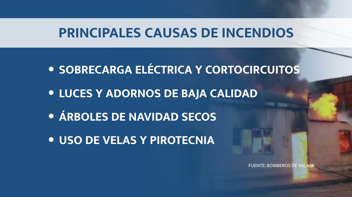 El incremento de incendios durante la temporada decembrina se genera por diversos factores que incluyen el mayor uso de elementos eléctricos y el descuido en las decoraciones, en donde la sobrecarga eléctrica, es la principal causa.