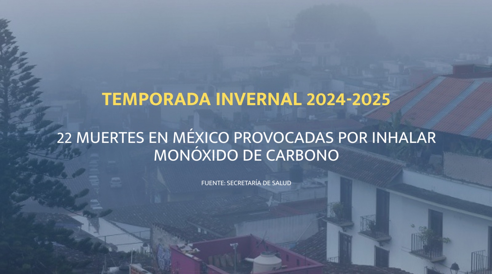 En México, según cifras oficiales, se registraron 23 muertes asociadas a temperaturas naturales extremas durante la temporada 2024-2025, en donde alrededor del 95% fueron por intoxicación de monóxido de carbono, derivado del uso de braseros, anafres, estufas de gas y otros métodos de calefacción en espacios cerrados.