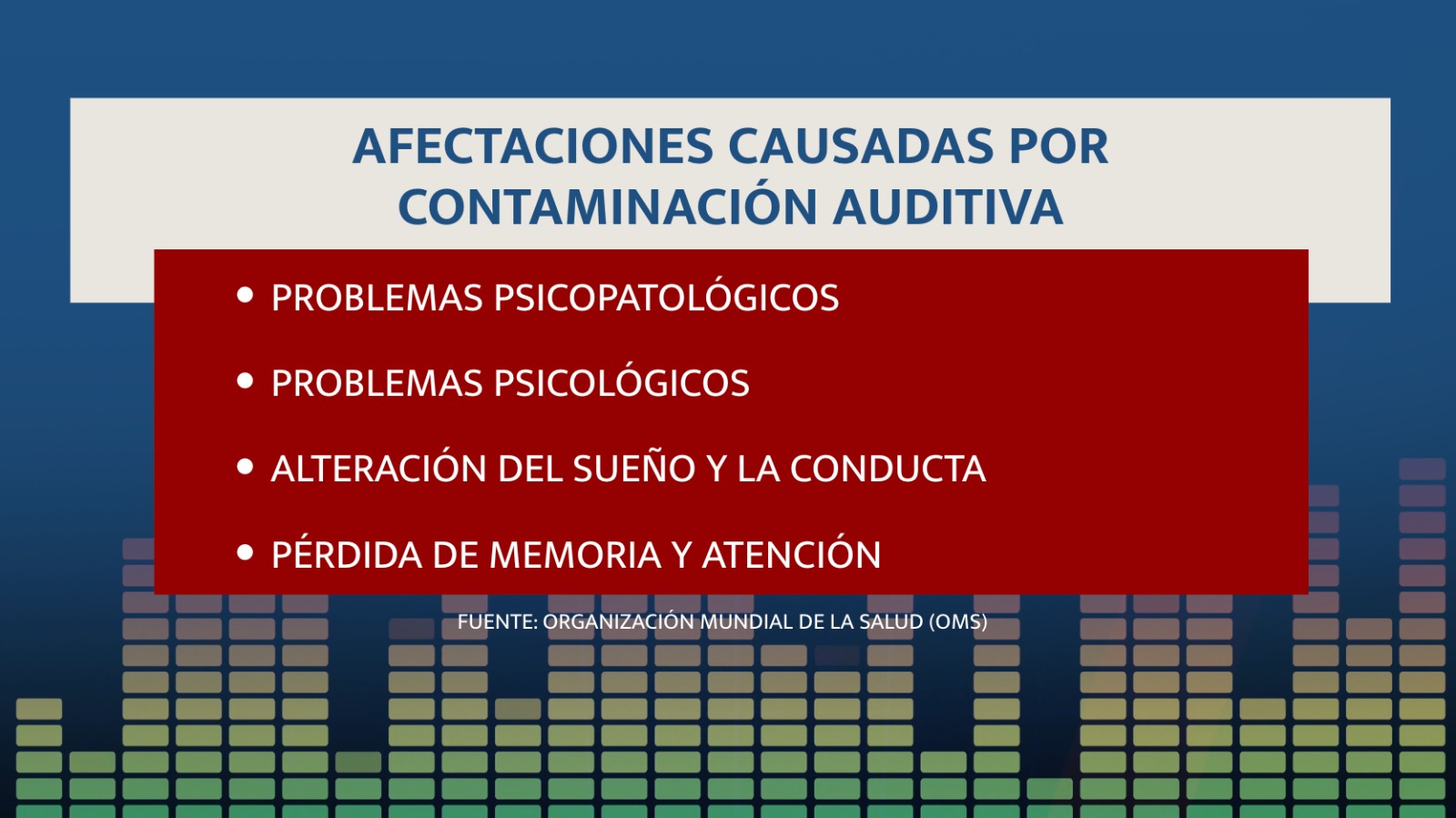 Además de los efectos negativos en la audición, entre las afectaciones más importantes causadas por este tipo de contaminación ambiental destacan: