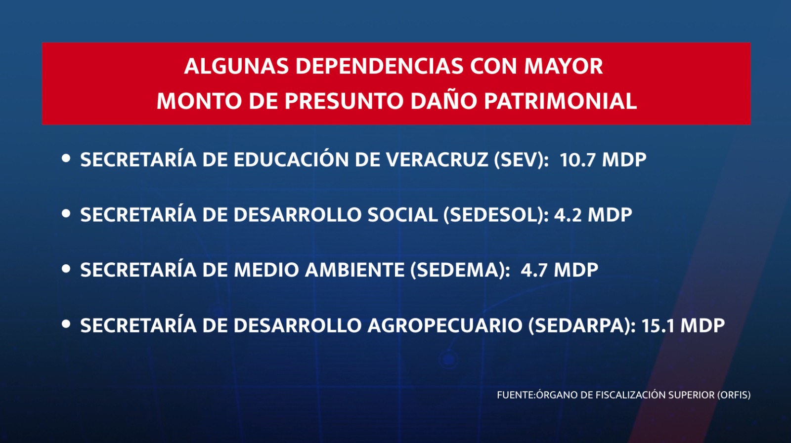 En 2024, su último año de administración, el ex gobernador dejó un presunto daño patrimonial de más de 2 mil millones de pesos, de los cuales 830 millones de pesos pertenecen a entes estatales, en donde podría haber una malversación de recursos que se dieron principalmente en obras de infraestructura, como lo son; carreteras, caminos, puentes, el Estadio Pirata Fuente, el Acuario de Veracruz, entre otros.