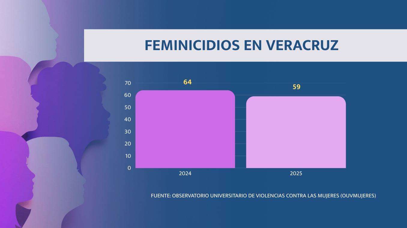 Entre enero y noviembre de 2025 el Observatorio Universitario de Violencias contra las Mujeres (OUVMujeres, Universidad Veracruzana) registró 59 feminicidios en el estado de Veracruz.