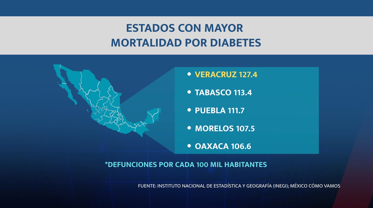 Veracruz destaca como una de las entidades con mayor prevalencia de diabetes entre la población.