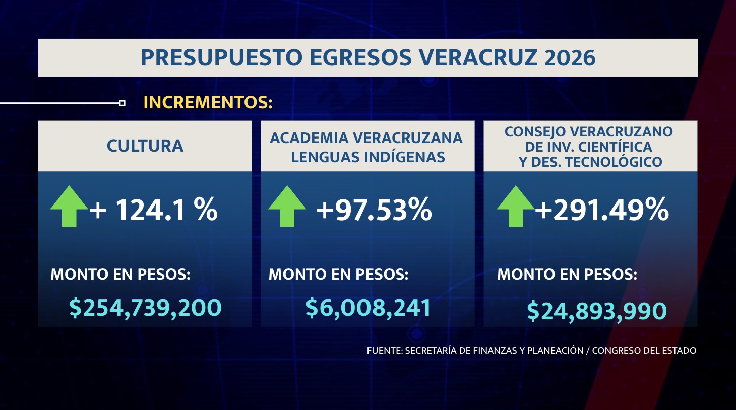 Pero no todo es pérdida: para 2026, se eleva el presupuesto en los rubros de desarrollo social, seguridad pública, medio ambiente, las lenguas indígenas e incluso, ciencia y tecnología recibirán incrementos.
