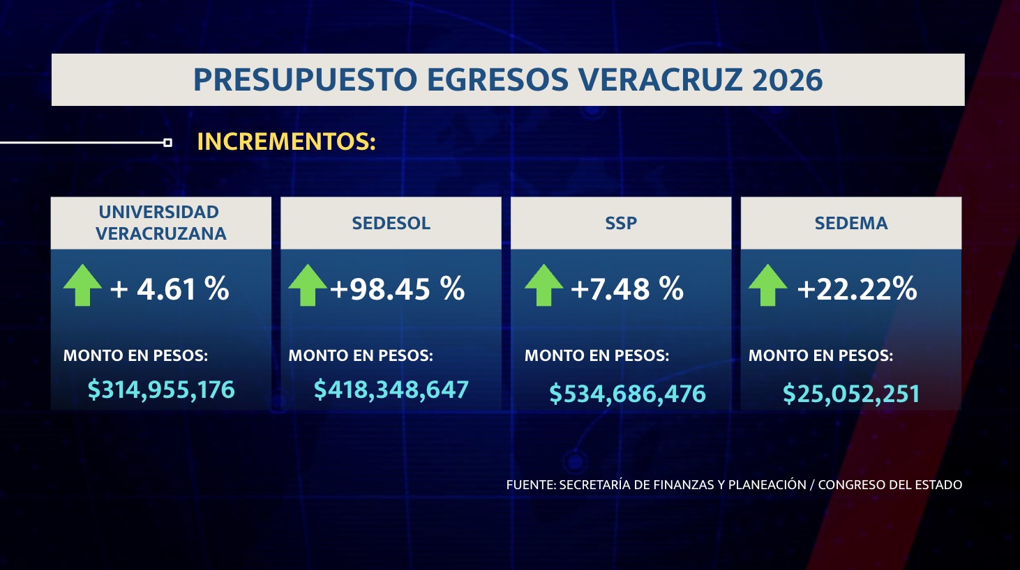 Más dinero para los pobres y para la policía, pero menos recursos para los hospitales y el turismo. Es el resumen de la propuesta del Gobierno de Veracruz para gastar el dinero en 2026.
