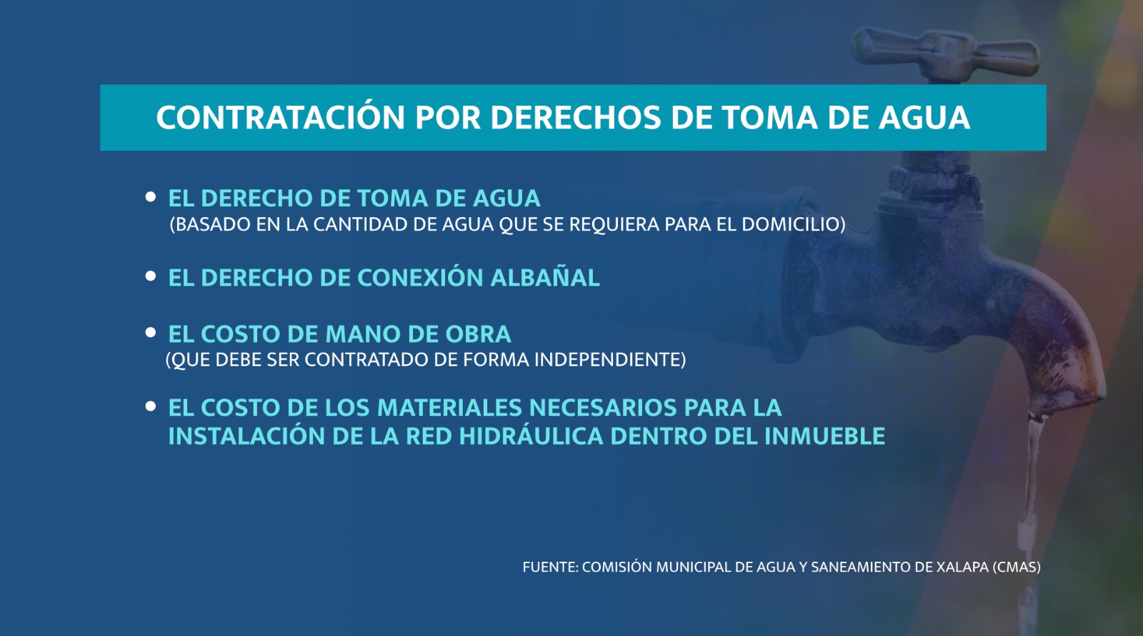 Solicitar la instalación de agua en Xalapa básicamente depende de cuatro puntos importantes: