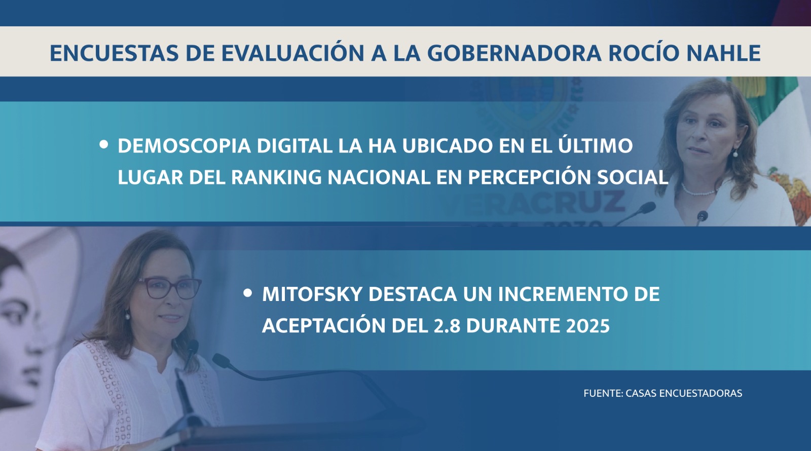 Además, se ha destacado la coordinación con el Gobierno Federal, como la integración al programa IMSS-Bienestar y la implementación de programas sociales; aunque siguen las quejas de la falta de medicamentos, principalmente oncológicos, pese a la puesta en marcha de las "Camionetitas de la Salud".