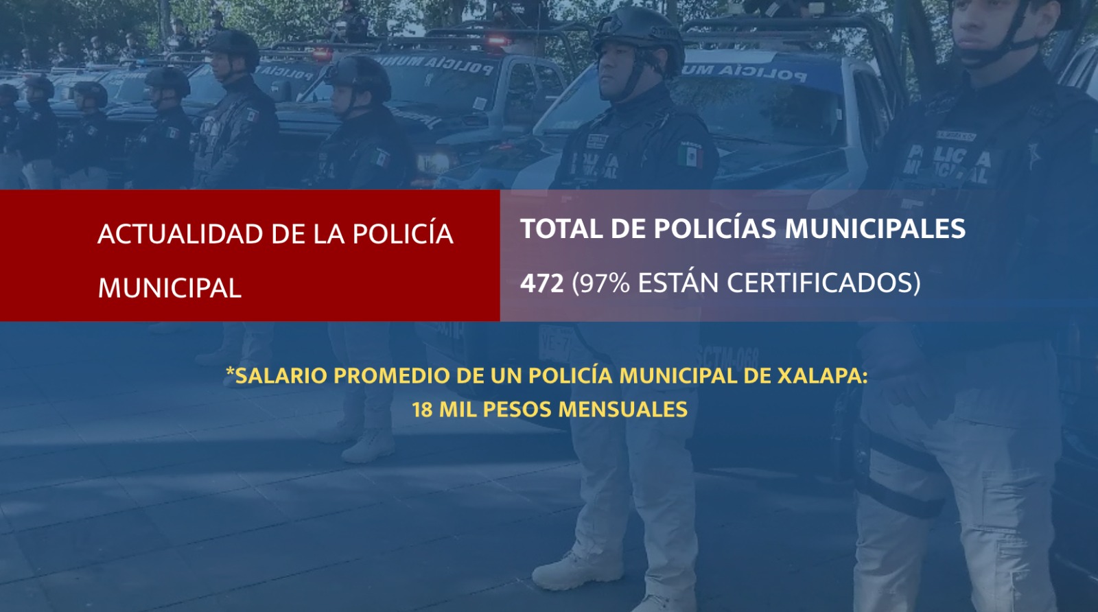 Actualmente 472 elementos conforman la Policía Municipal de Xalapa; de estos, el 97 por ciento se encuentran certificados.