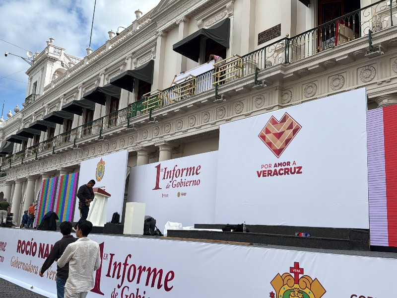 Instalan escenario para informe de Nahle, centro de Xalapa sigue cerrado