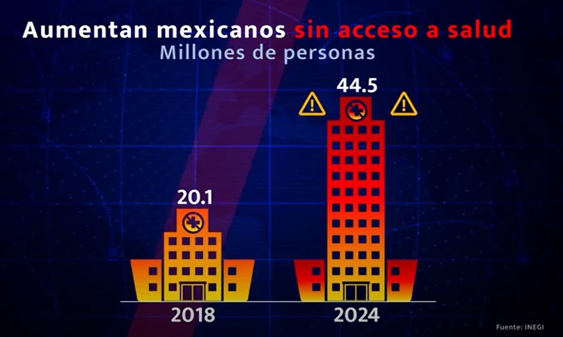 En 2018, el gobierno de Morena prometió un sistema de salud "como el de Dinamarca", pero más de seis años después, la realidad es alarmante. La cifra de mexicanos sin acceso a servicios médicos ha aumentado de 20 millones en 2018 a 44.5 millones en 2024. Más del doble. Hoy, más de un tercio de la población mexicana no tiene acceso a atención médica adecuada, y la crisis sigue empeorando.