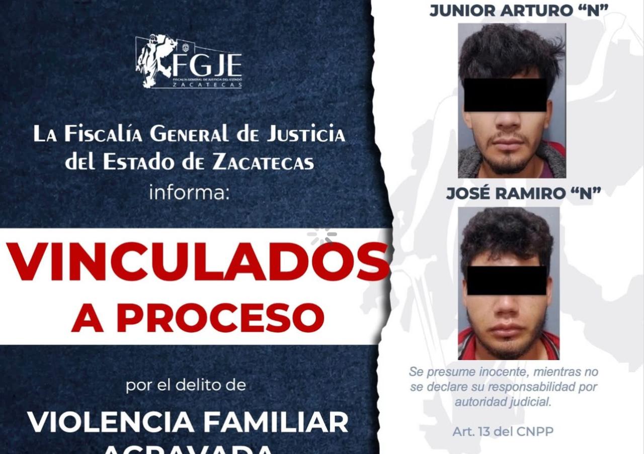 Por otra parte, en Sain Alto, mediante el trabajo de la Unidad de Investigación Mixta de Sombrerete, se obtuvo la vinculación a proceso de Junior Arturo "N" y José Ramiro "N", por el delito de violencia familiar agravada.