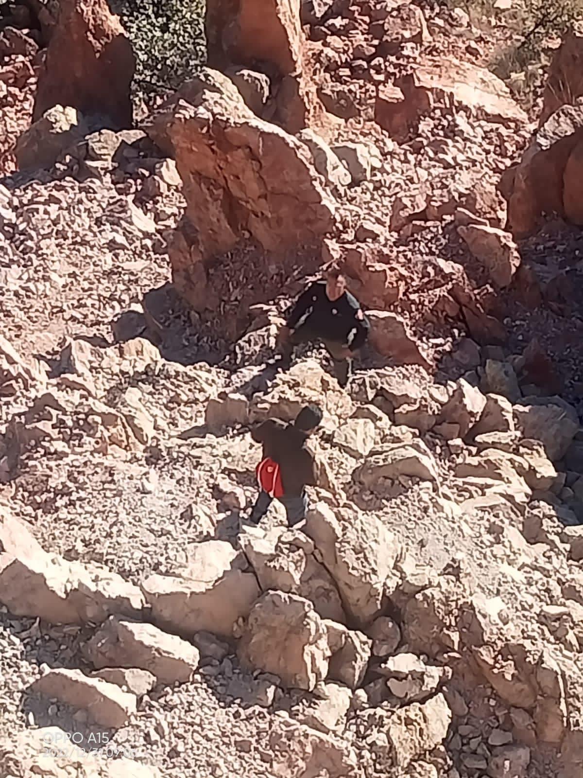 El equipo de rescate de Protección Civil realizó maniobras para escalar la pendiente rocosa y convencer a la persona quien se encontraba desorientada y asustada para poder descender de los peñascos del Cerro de la Bufa.