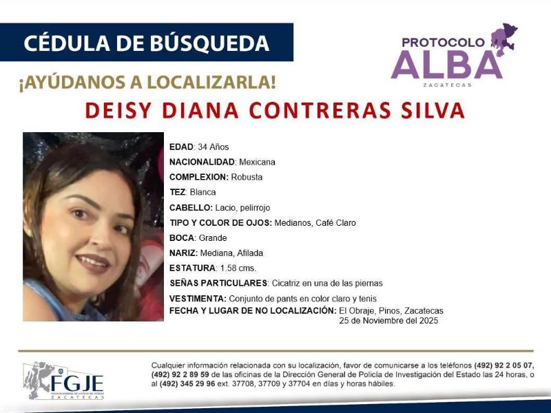 FGJEZ sin localizar a Deisy Diana Contreras, exsíndica de Pinos
