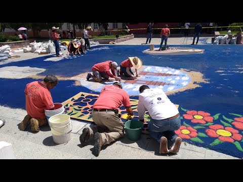 Artesanos de Uriangato elaboran tapete monumental en Ecuandureo